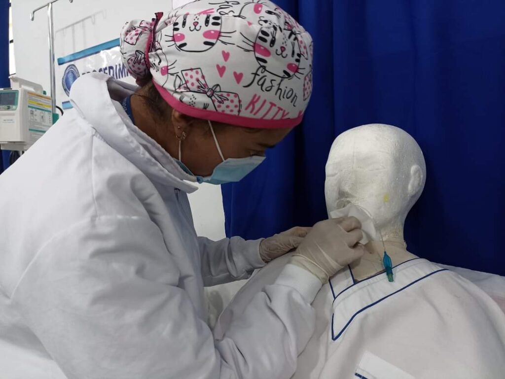 Estudiantes del programa Técnico Auxiliar de Enfermería, jornada diurna, desarrollaron clase práctica en relación a la competencia denominada:» Técnica de aspiración de Secreciones por traqueostomía» una jornada en la que pudieron realizar el paso a paso del procedimiento con ayuda de equipos de simulación con los que cuenta nuestra institución.