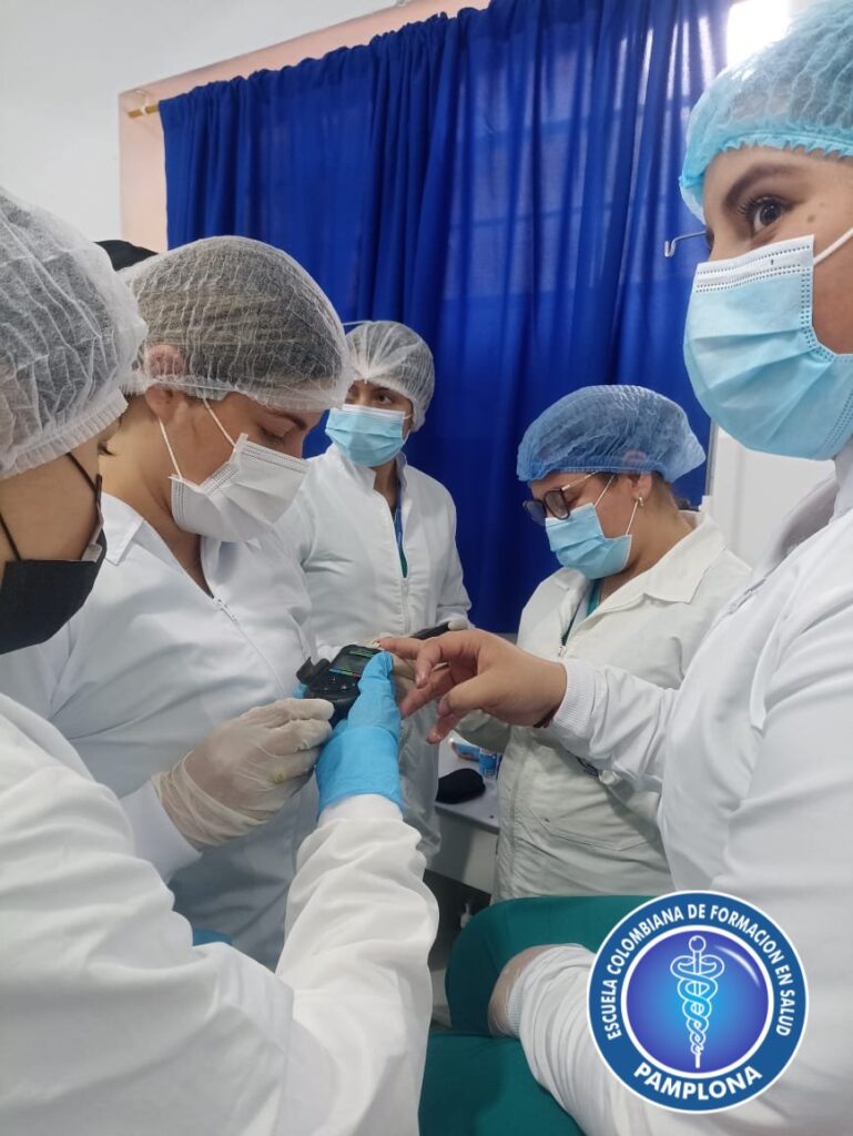 Estudiantes en formación primer semestre del Técnico Auxiliar en Servicios Farmacéuticos desarrollaron clase teórica en relación a las temáticas de “toma de glucometría, toma de tensión, índice de masa muscular y toma de saturación”; con esta jornada se pretende brindar un escenario de aprendizaje mucho más cercano al contexto real que deben enfrentar los futuros auxiliares en el campo laboral.