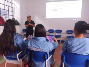 Estudiantes del Técnico Auxiliar en Enfermería II semestre se encuentran desarrollando el proyecto transversal en salud en la Escuela 4 de Julio de nuestro municipio;